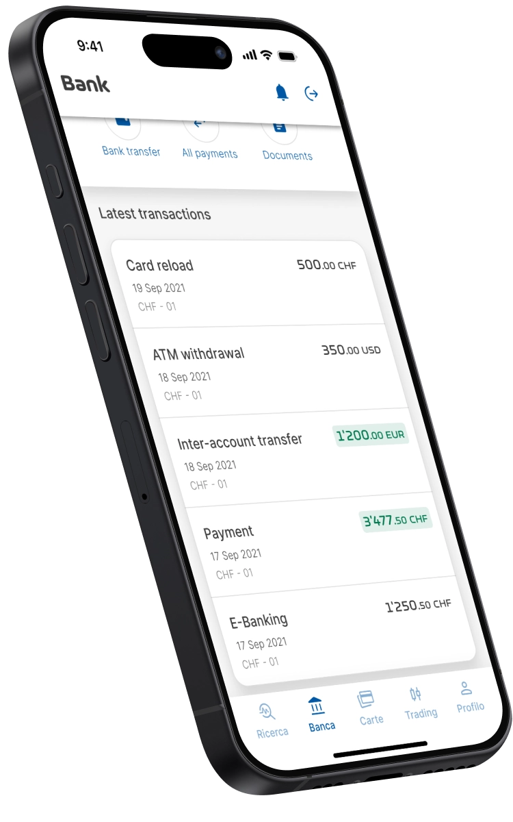 You can make bank transfers, set up recurring payments, pay QR-bills or use your debit card to shop online, all conveniently via the app, wherever you are.